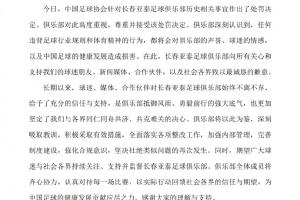 体育资讯01月29日讯 亚泰官方回应历史问题处罚,表示尊重并接受该处罚决定。