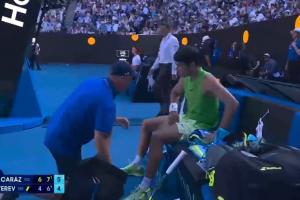 体育资讯01月30日讯 澳网男单半决赛阿尔卡拉斯vs兹维列夫进行到第三盘,阿尔卡拉斯申请医疗暂停,兹维列夫认为阿卡是抽筋,所以按照规定不能申请伤停治疗,一直在旁边和赛事监督抱怨这一情况。