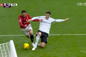 体育资讯02月01日讯 英超第24轮,曼联vs富勒姆。比赛第16分钟,库尼亚突入禁区倒地,主裁判第一时间判点,VAR介入后判罚富勒姆球员禁区外拉人犯规,主裁改判任意球。
