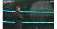 比赛第11分钟谢尔基为曼城取得进球后,转播镜头对准场边的两位主帅:弗兰克怒拍大腿,将手中的水瓶摔在了地上;而另一边瓜迪奥拉则是挥拳庆祝。