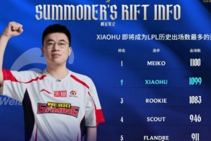 体育资讯2月2日讯 仅差一场!xiaohu即将超越Meiko成为LPL出场数最多的选手!