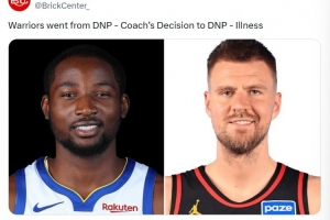美媒BrickCenter调侃道,勇士DNP的原因从教练决定→生病。