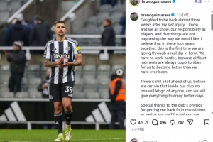 吉马良斯此役伤愈复出,为纽卡踢满全场,并点射破门,赛后他在社交媒体上写道:“时隔近三周伤愈复出,我感到很高兴。我们球员都深知肩负的责任,也明白现状未达预期。我们并肩作战的这四年里,这是我们第一次真正经历状态低谷。我们必须更加努力,因为艰难时刻往往是让我们变得比以往更好的契机。