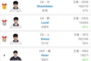 体育资讯2月10日讯 最新韩服排行榜,DK上中野包揽前三,Peter来到第四,Peyz来到第五啦!