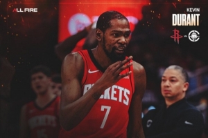 赛后,火箭官方发布杜兰特和申京本场数据海报。
