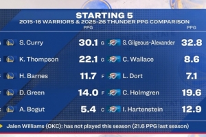 注:雷霆的杰伦·威廉姆斯赛季至今未出战,上赛季他场均21.6分。