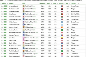 值得注意的是,这个数字比他实际收到的金额低40%。这主要是因为皇马在2024年夏天签下他时没有支付转会费,以及超级明星效应使顶级球员能够通过其地位获得更多收入。萨拉赫和贝林厄姆分别位列第二和第三。