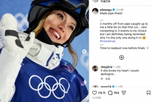 赛后谷爱凌更新了ins,晒出自己的比赛照并配文写道: