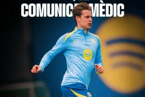 巴萨官方:一线队球员弗伦基·德容在今日上午的训练中,右大腿远端股二头肌受伤。检查结果确认,其康复周期预计为5至6周。