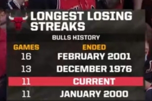 单月0胜11负,也是公牛队史最差单月战绩。