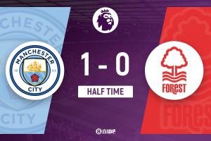 半场-曼城暂1-0森林 塞梅尼奥连场破门谢尔基妙传助攻