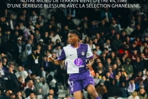 体育资讯11月14日讯 国际友谊赛,加纳队客场0-2不敌日本队,比赛第51分钟加纳国脚阿布·弗朗西斯在防守田中碧时不慎骨折重伤,他也被担架直接抬出场外。