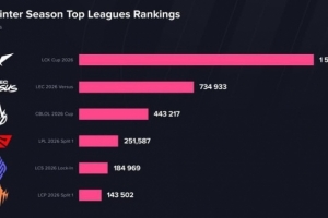 体育资讯3月15日讯 根据Esports Charts数据统计,LCK海外收视达150万人,超LPL海外6倍!