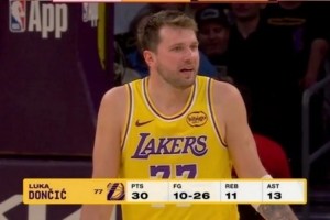 卢卡今天生涯第55场30+三双,追平历史第二——历史第二是?约基奇。