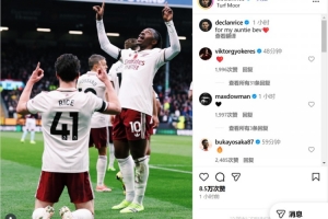 赖斯的姨妈贝芙近日去世,阿森纳中场用进球献给了自己深爱的人。