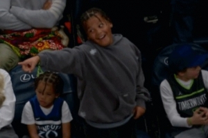 GIF-兰德尔儿子场边庆祝满眼都是崇拜!