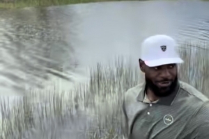 惊魂一刻!詹姆斯和布朗尼打高尔夫时遇到鳄鱼 硬着头皮去捡球