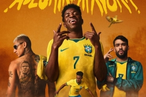 巴西队和耐克官方社媒晒出世界杯主场球衣的宣传照片,维尼修斯、里沙利松等球员担当模特,配文:“喜悦之威——若巴西队露出笑容,对手就已经输了。”
