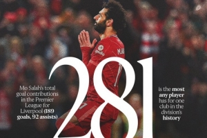 利物浦盘点萨拉赫数据: