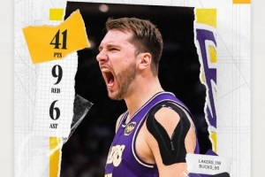 赛后湖人球员拉拉维亚更新IG动态转发东契奇海报,并称赞道:“他挺厉害的。”