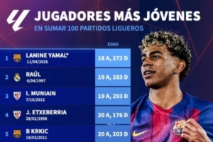 下一篇: 西甲出战100场最年轻球员榜:亚马尔居首,劳尔、穆尼亚因前三