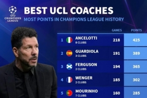 下一篇: 欧冠主帅积分榜:安切洛蒂、瓜迪奥拉、弗格森前三,西蒙尼第六
