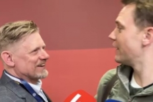 体育资讯4月16日讯 欧冠1/4决赛次回合,拜仁vs皇马,第1分钟,诺伊尔出球直接传给居莱尔,后者吊射空门得手,不过拜仁最终成功晋级。赛后,舒梅切尔在混合采访区与诺伊尔开起了玩笑。