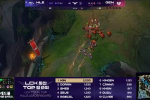 体育资讯4月18日讯 在今日的LCK常规赛HLE对阵GEN的第二局比赛上,Kiin达成了自己在LCK的2000击杀,LCK上单位第一!