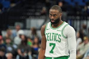 GIF-杰伦·布朗两连肘击曼恩被吹进攻犯规,绿军挑战失败