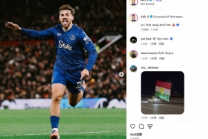 霍尔也在赛后通过社媒晒出自己的庆祝照,并配文:“为这支球队感到无比自豪..顺带一提,我们的客场球迷(真是绝了)💙”