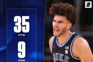 此役,明年NBA状元热门&杜克大学悍将卡梅隆·布泽尔继续打出优异表现,他登场36分钟18投13中,三分4中2、罚球11中7,狂砍35分9篮板3助攻2抢断。