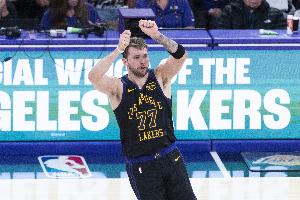 据统计,东契奇连续两场比赛得到至少35分10助攻,湖人队史第三人,比肩杰里·韦斯特和科比。