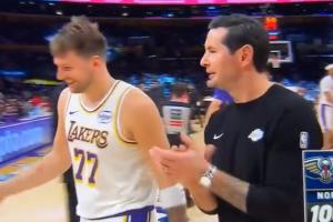 GIF-雷迪克暂停期间为东契奇鼓掌加油