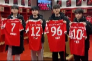 体育资讯12月4日讯 T1分享动态:选手们在拜仁主场手持球衣合照。