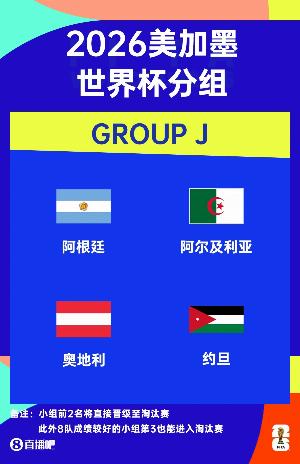 体育资讯12月06日讯 2026年美加墨世界杯小组赛抽签仪式结束,阿根廷与阿尔及利亚、奥地利、约旦同组。