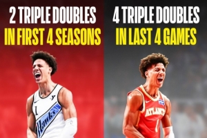 有意思的是,杰伦·约翰逊生涯一共拿到8次三双,而他生涯前4个赛季才拿到过两次。而本赛季就拿到了6次,其中更是包含这连续4场三双。