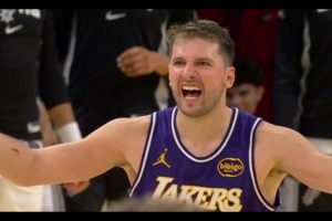 GIF-东契奇长传喂饼 八村塁空篮上丢