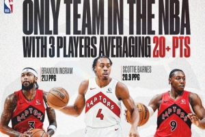 体育资讯11月6日讯 NBA Canada报道,猛龙队是联盟目前唯一一支有三位球员场均得分超过20分的球队。