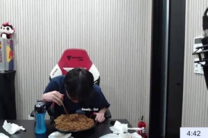 体育资讯12月24日讯 被泡面单杀了😂Doran履行夺冠约定,挑战五分钟吃五桶泡面结果失败。