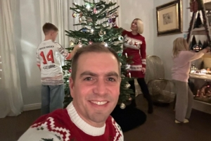 在照片中,拉姆的儿子身穿的是路易斯·迪亚斯的14号拜仁球衣。