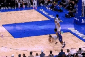 GIF-塞克斯顿突破上篮遭遇艾萨克正面大帽 随后追尾送犯规