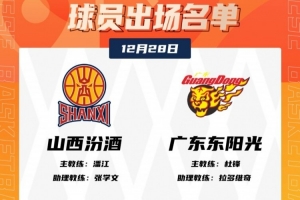 体育资讯12月28日讯 CBA常规赛今晚上演晋粤大战,山西主场迎战广东。