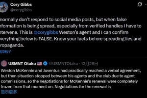 体育资讯12月31日讯 不久前,麦肯尼的经纪人科里·吉布斯在社交媒体发文,辟谣了转会传闻。