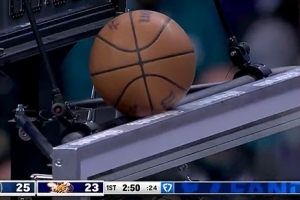 GIF-波杰姆斯基三分不中,球到计时器上