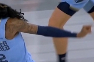 GIF-莫兰特强吃拉塞尔后比侮辱手势