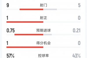 控球率:57%-43%