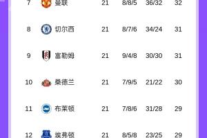 体育资讯1月9日讯 今日阿森纳0-0利物浦,至此英超第21轮全部战罢,最新积分榜如下: