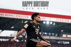 体育资讯1月13日讯 今天是拜仁边锋路易斯-迪亚斯的29岁生日,拜仁官方社媒为他送上祝福。