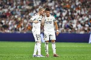 维尼修斯和居莱尔作为被寄予厚望的两位领军人物,都没能站出来。如一些专业人士所预测的那样,马斯坦图诺的情况也类似,除了一个幸运进球之外,他没有展现出可以挑战亚马尔,争夺世界足坛霸主地位的实力。总之就是,完全失控,无人领头。