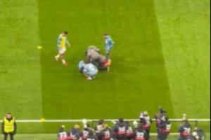 体育资讯01月17日讯 皇马vs莱万特赛前,姆巴佩热身抢圈训练时遭赫伊森误伤,痛苦捂住脚踝,长时间接受队医治疗后,一瘸一拐起身。